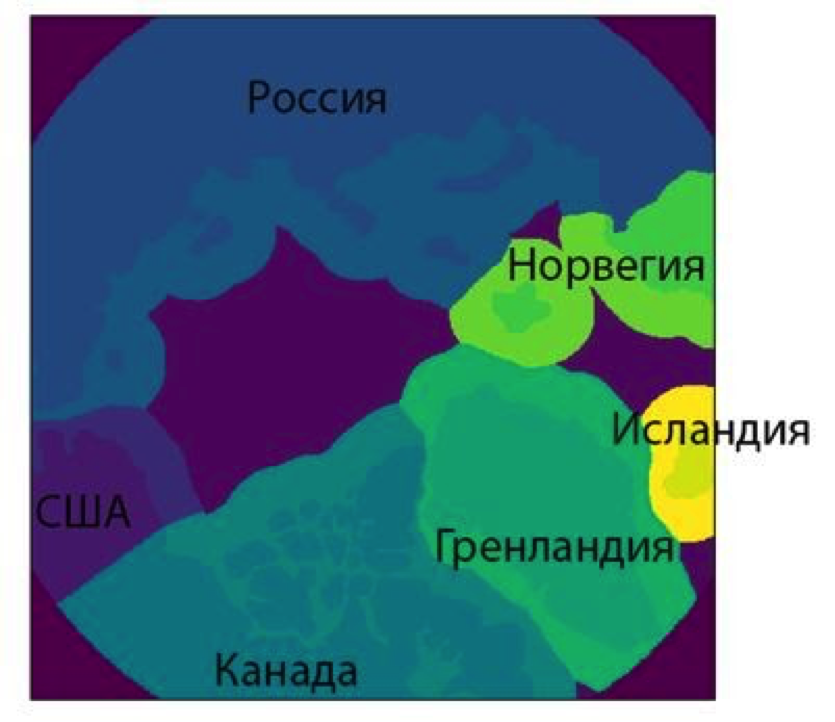 Уровень заинтересованности варьировался от одного (низкий) до семи (высокий). После расчетов по специальной формуле получилось достаточно правдоподобно. К примеру, Россия оказалась более нацелена на нефть, чем на рыбу, а для стран поменьше, той же Гренландии, по отношению к России больше важна рыба и меньше нефть.