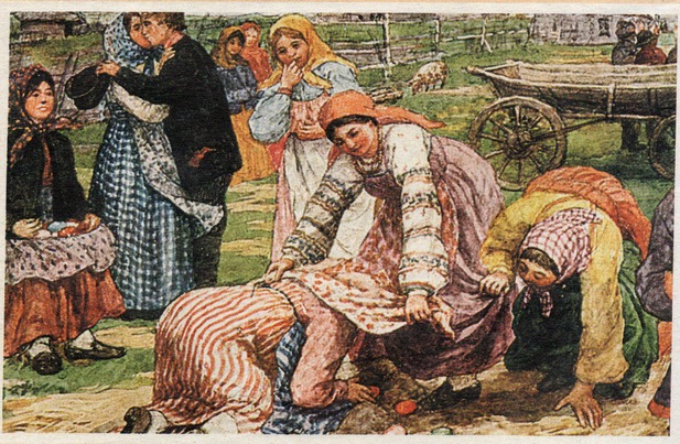 We all know about egg tapping, but Easter eggs were used in multiple other ways. First and foremost, they were eaten to break the Lenten fast. People would come home from the Easter service preceded by a strict fast to a substantial meal served on the table. While produce from the previous year was perhaps still available by the Orthodox Easter in late spring or early summer, it would have been plain and consisting mainly of potatoes, rutabaga and mushrooms. Being able to tap into their stocks of cottage cheese and eggs for the first time since Maslenitsa/Shrovetide was a welcome addition to the diet for farmers who worked hard and needed energy.